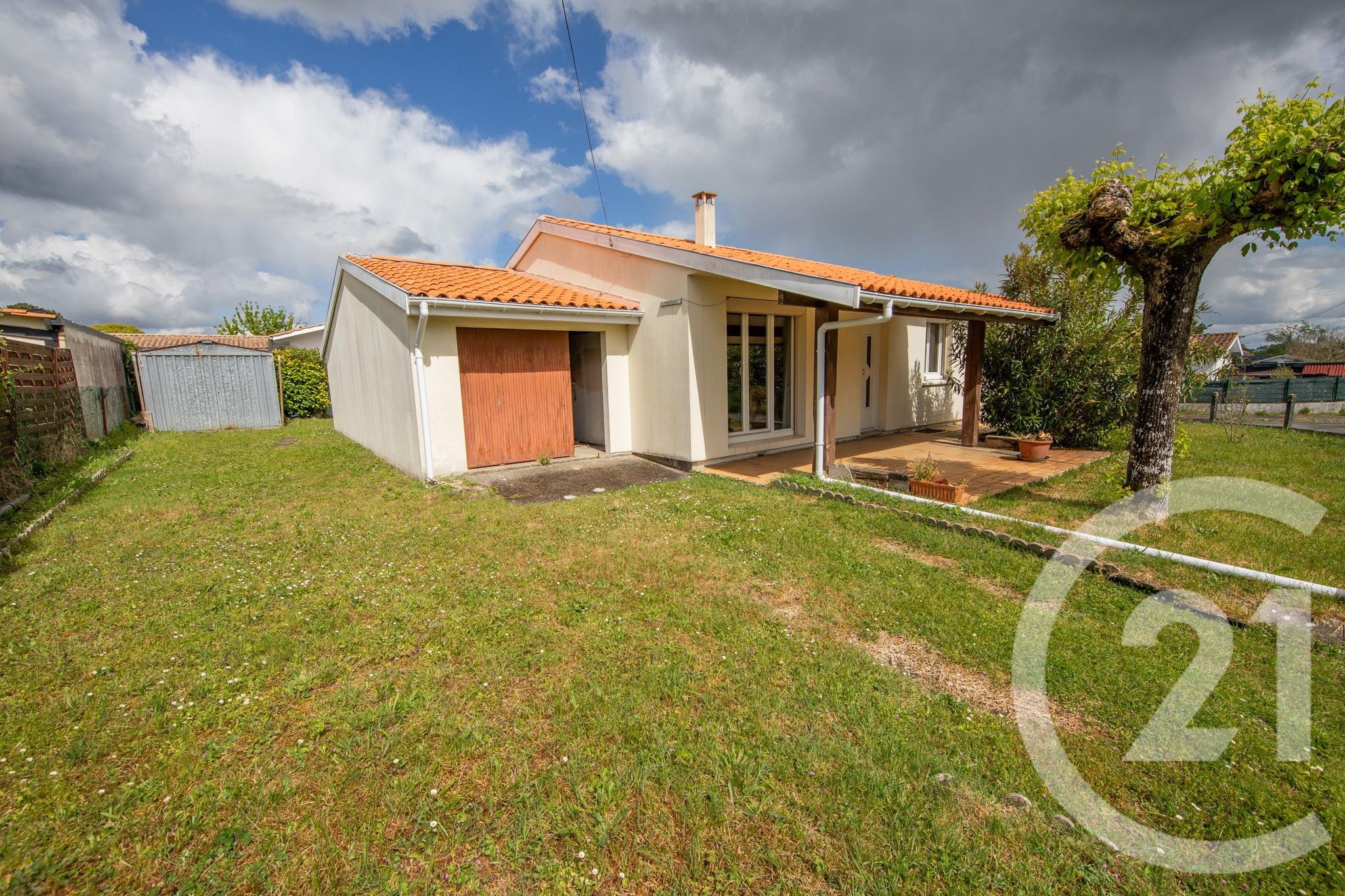 Un garage attenant de 25 m² ainsi qu'un abri de jardin complètent ce bien.